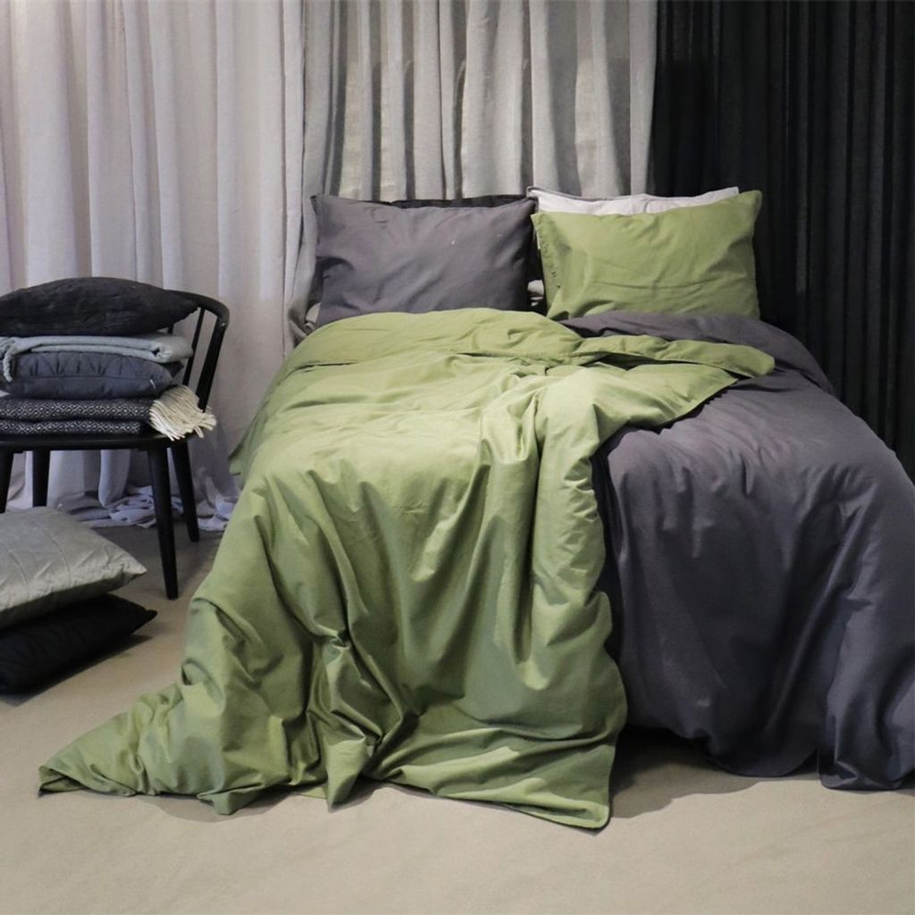 Elton Oliv Bäddset för enkeltäcke innehåller ett påslakan 150x210 cm och ett örngott 50x60 cm.
