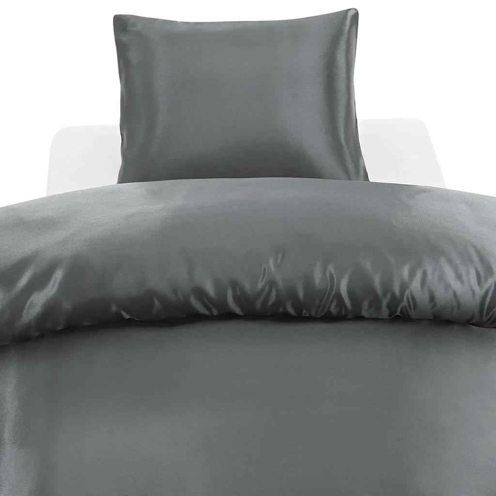 Glamoursatin Antracite för enkeltäcke innehåller ett påslakan 150x210 cm och ett örngott 50x60 cm.