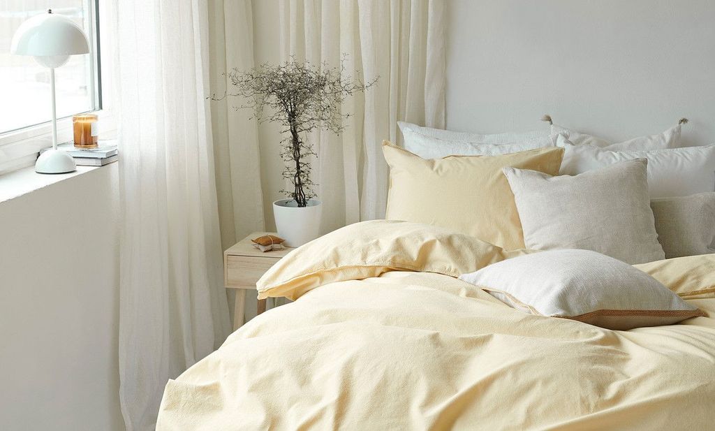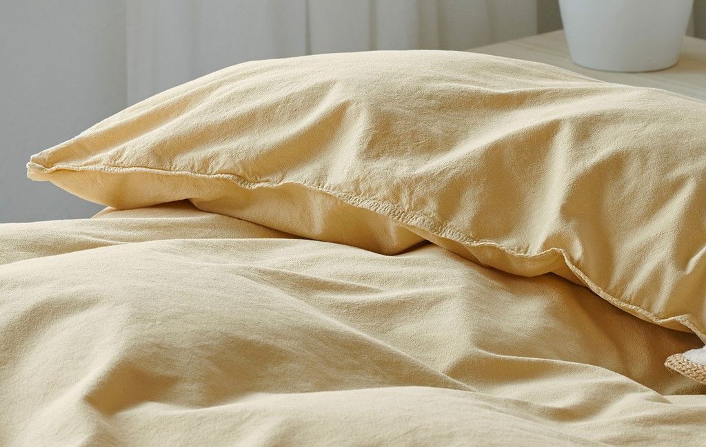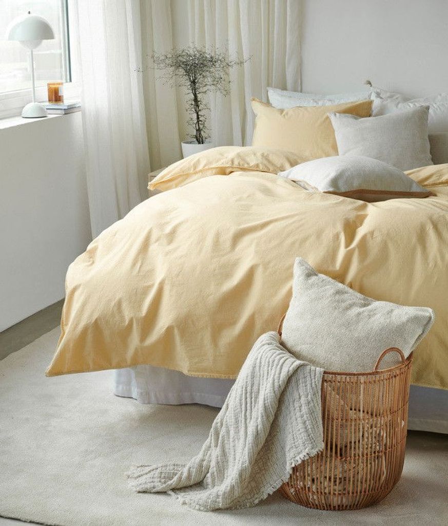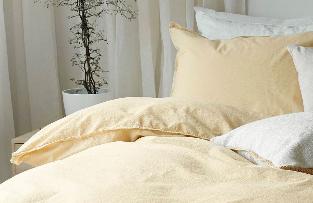 Humble Gul för dubbeltäcke innehåller ett påslakan 220x210 cm och två stycken örngott 50x60 cm.