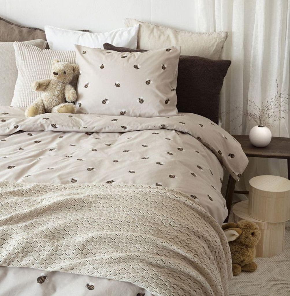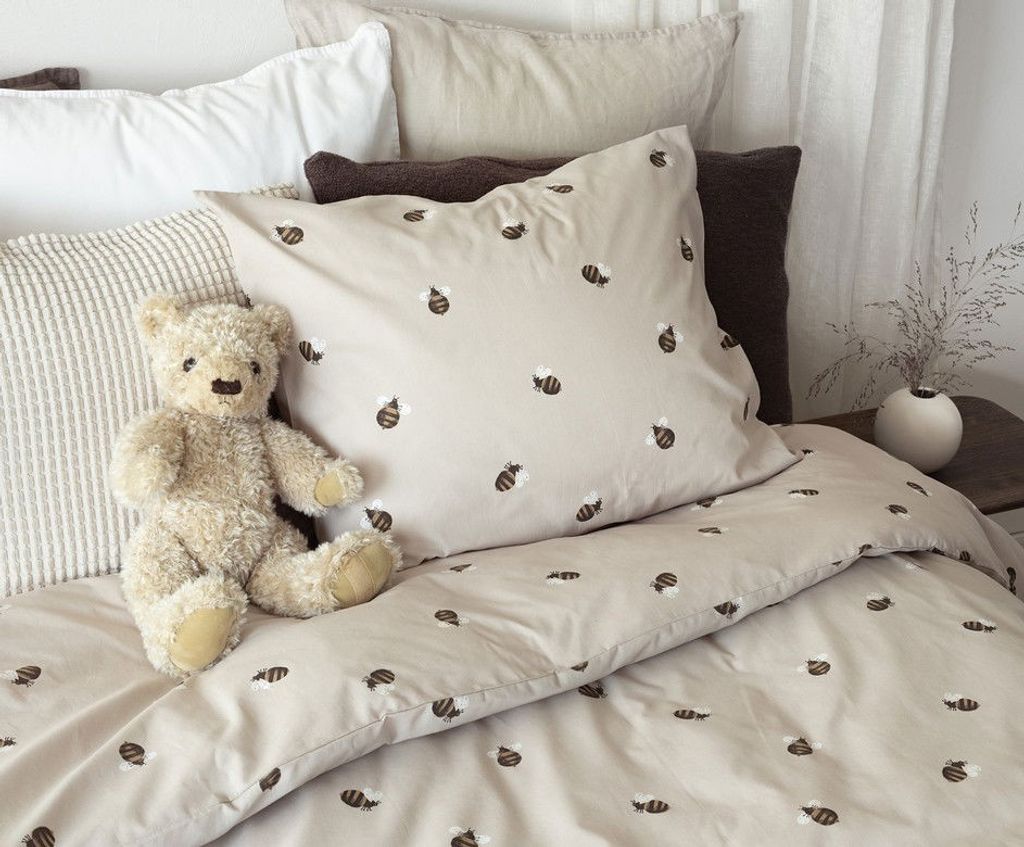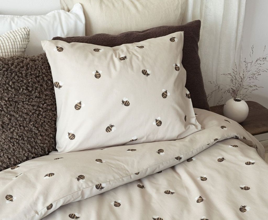 Humla är ett vårigt bäddset från Borganäs of Sweden och har ett mönster av söta humlor. De små humlorna kompletteras på en beige bottenfärg och skapar en härlig känsla till sovrummet. Med Humla får man allt i ett bäddset: komfort, stil och en hemtrevlig känsla!