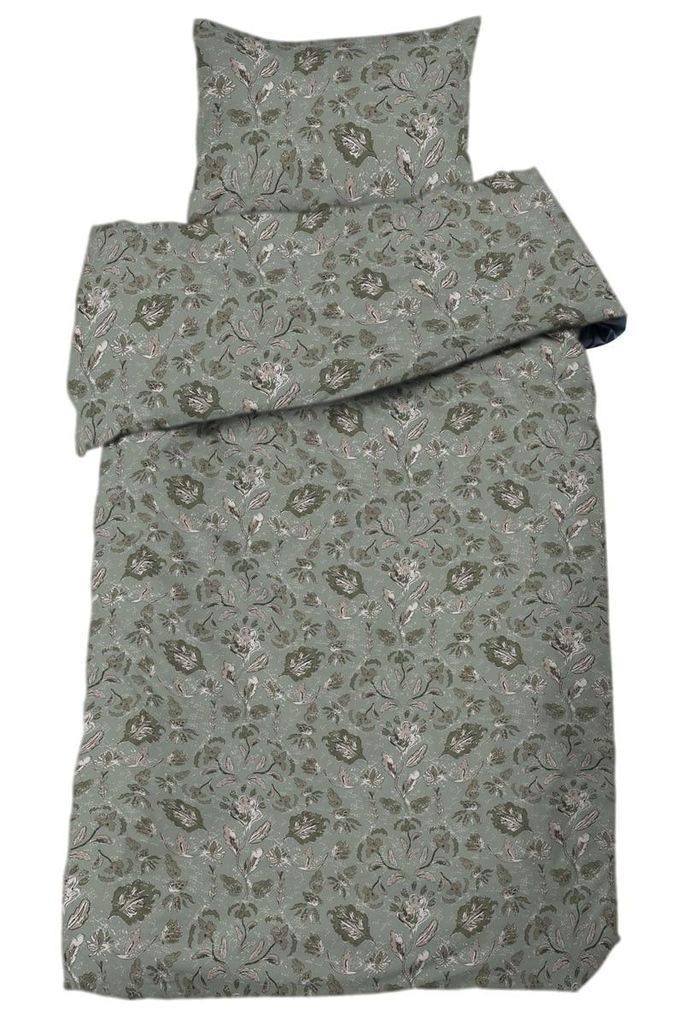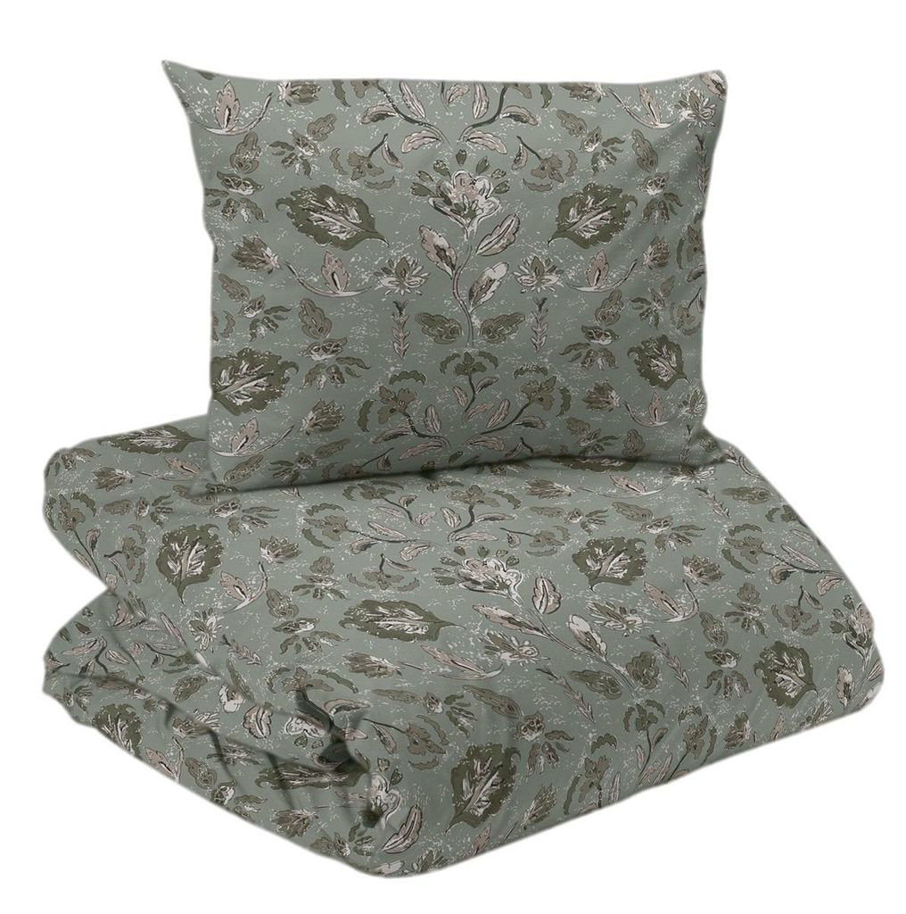 Lyxigt bäddset i satinvävd 100 % bomull med botaniskt mönster i gröna nyanser. Trådtäthet 200 TC för en silkeslen känsla och elegant lyster.