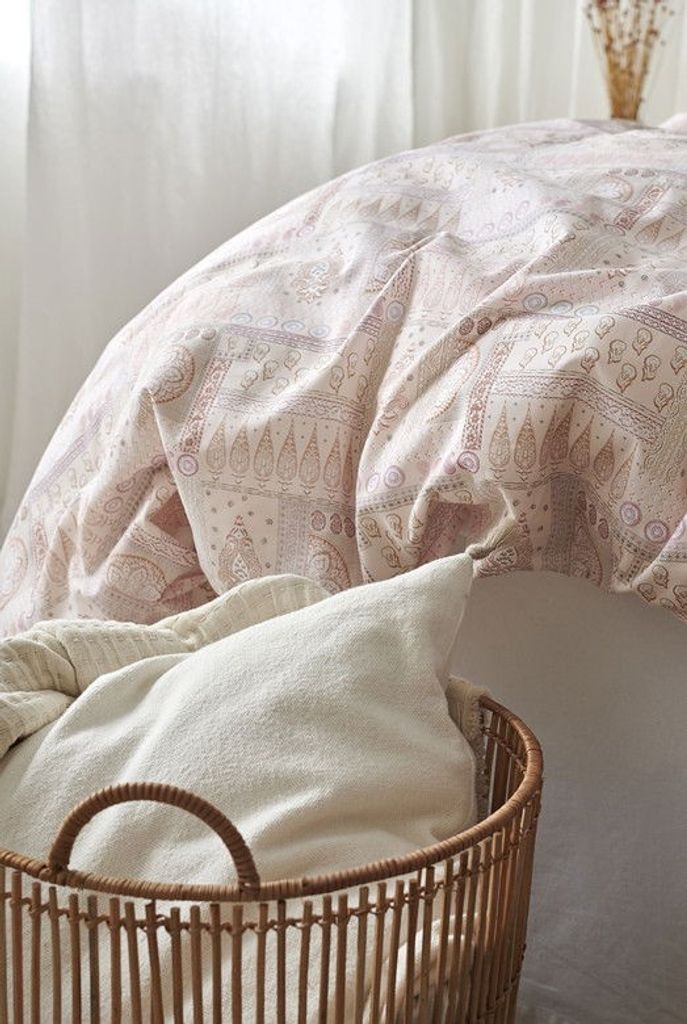 Jasmine Peach har ett nytt och unikt mönster i form av ett orientaliskt paisleymönster i aprikosa toner. Bäddsetet samspelar mellan mjukhet och charm som skapar en underbar känsla till sängen. Jasmine bidrar till även en ny och fräsch känsla till hemmet med dess ljusa färg och fina mönster tillsammans!
