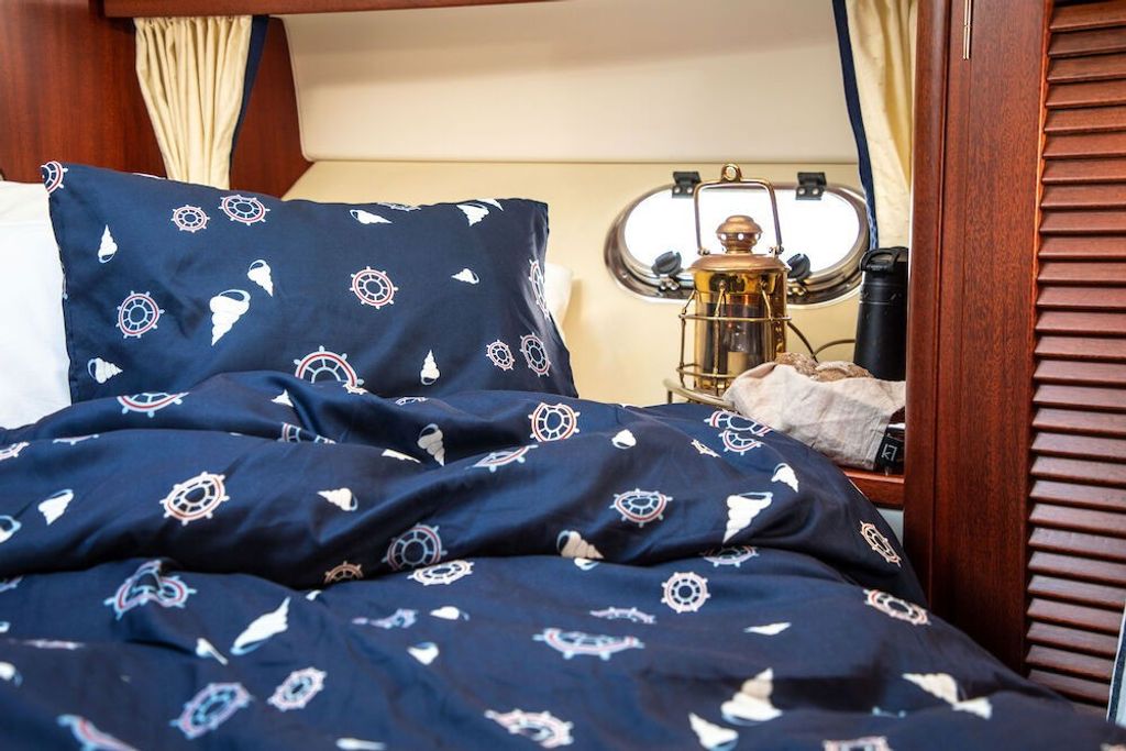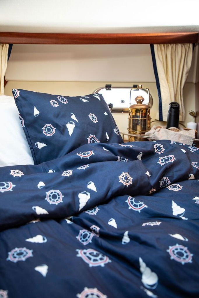 Jorehed är ett snabbtorkande bäddset från Lord Nelson Victory. Bäddsetet har ett maritimt mönster i form av fina snäckor och roder på en marinblå bottenfärg. Bäddsetet ger en luftig och mjuk upplevelse som är tillverkad av mikrofiber. Till både hemmet och båtsemestern är bäddsetet det perfekta valet då mikrofiberkvaliteten torkar snabbt vid upphängning. Jorehed är därför ett underbart bäddset för alla tillfällen!