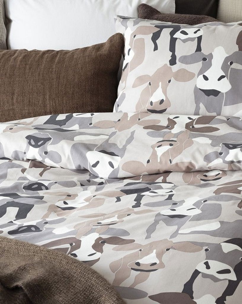Kossor är ett unikt bäddset som har ett mönster av fina kossor. Kossorna har en beige och brun färgskala som skapar en kontrast till sovrummet. Bäddsetet passar perfekt till den som älskar djur eller vill skapa något unikt i hemmet. Med Kossor får man allt i ett bäddset: komfort, unikhet och en hemtrevlig känsla!