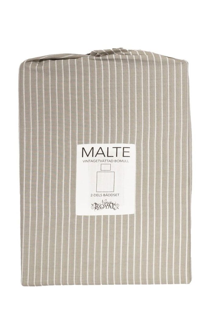 Malte är ett bäddset som är vacker och skön mot huden, samtidigt som en fin inredningsdetalj i sovrummet. Bäddsetet har ett randigt mönster med en vintagetvättad look och en jeanssöm runt kanterna som ger en extra touch av lyx i ett simpelt bäddset. Skapa den där härligt mjuka känslan för hela kroppen, samtidigt som man får en vacker ögonsten i sovrummet!