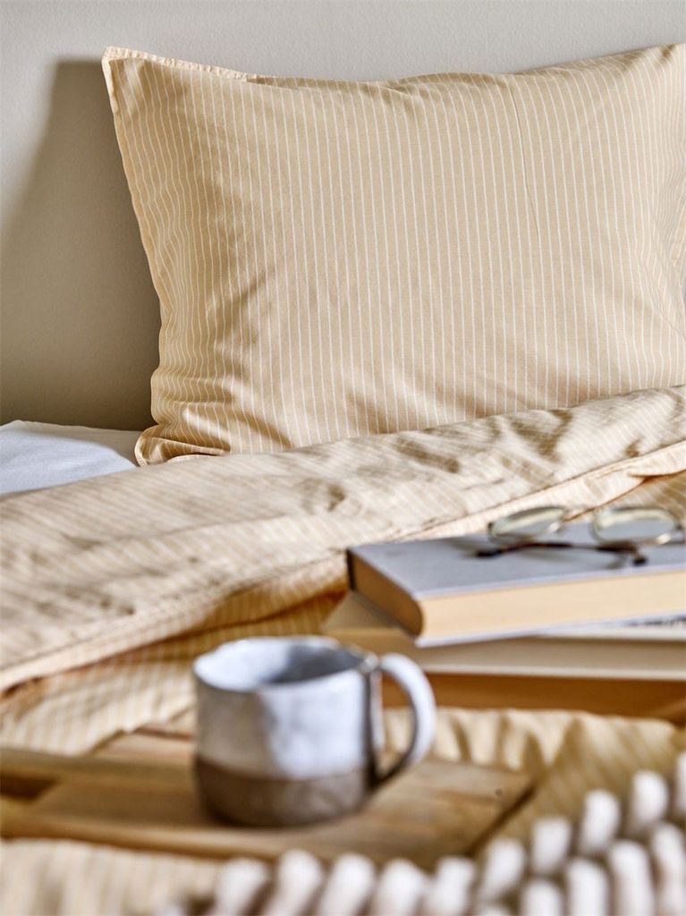 Malte Ljusgul Randigt för enkeltäcke innehåller ett påslakan 150x210 cm och ett örngott 50x60 cm.
