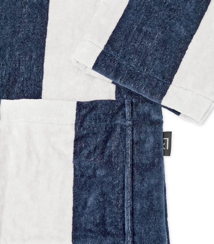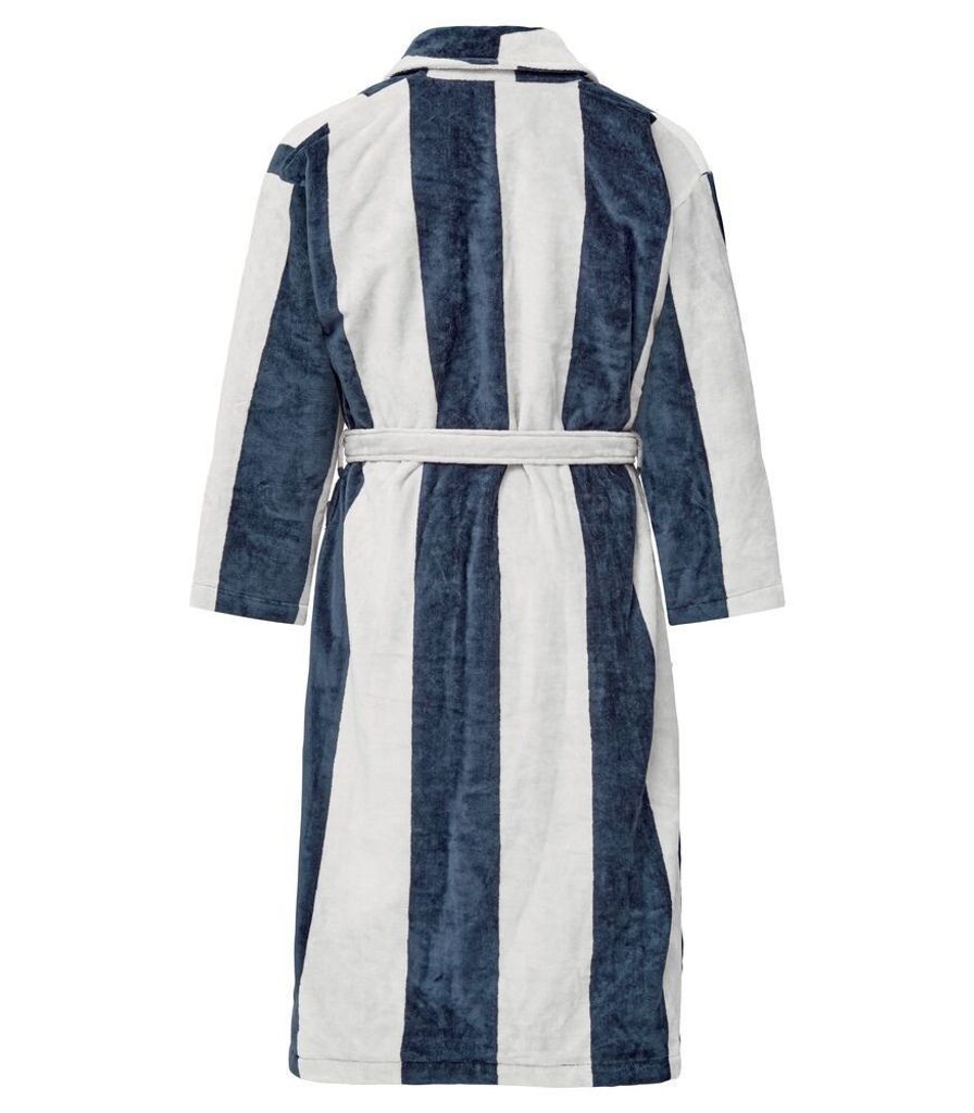 Velour är en lyxig badrock från Kosta Linnewäfveri. Badrocken har ett sofistikerat mönster av ränder i vitt och marint med en bred krage och välgjorda detaljer. Detta är ett perfekt val till den som vill lyxa till vardagen samtidigt som att känna sig varm och go efter duschen!