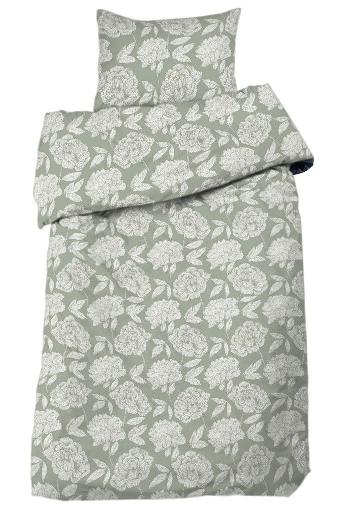 Upplev skön komfort med vackra bäddsetet Peony. Tillverkat av 100% bomullssatin med en trådtäthet på 200, erbjuder detta set en mjuk och elegant känsla. Med stilrena blommönster av pioner i lugna toner, ger det en tidlös och harmonisk atmosfär till ditt sovrum.