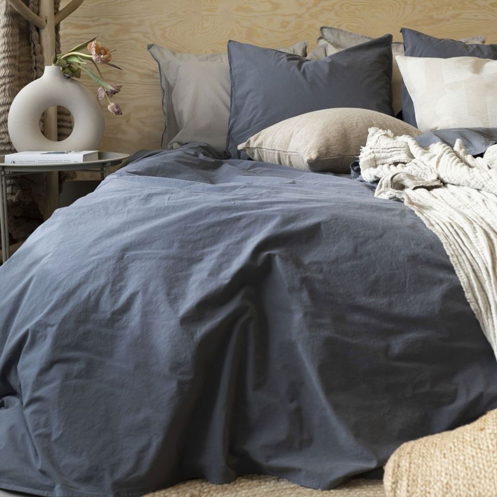 Percale är tillverkat av 100 % bomull i en percalekvalitet och har en trådtäthet på 204 TC, som gör att sängkläderna blir mjuka att sova i. Percale kännetecknas av dess höga trådtäthet på över 200 TC, vilket ger en slät och hållbar struktur. Bäddsetet är förpackat i en matchande tygpåse med knäppning upptill. Påslakanet har hörnhål upptill för en smidig bäddning och örngottet har en kuvertöppning som praktiskt håller kudden på plats hela natten.