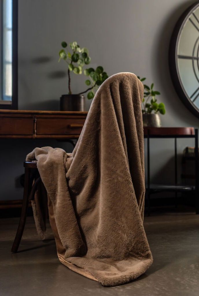 Pläden Nordby är en underbart mjuk och varm pläd i en härlig nougatig nyans. Nordby är tillverkad i fuskpäls och mikromink, vilket ger den dess pälsliknande utseende. Pläden är mycket värmande och förhöjer myskänslan i hela rummet. Detta är ett perfekt val att svepa runt sig när det börjar kyla ner på höst- och vinterkvällar!