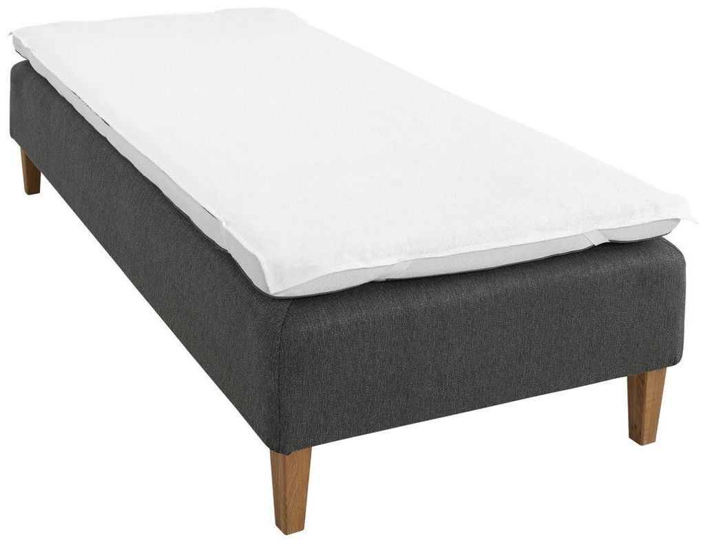 Ovansidan är tillverkad av 80 % bomull och 20 % polyester som gör den mjuk under lakanet. Frottén hålls på plats med hjälp av resårband i hörnen och denna storlek passar för en enkelsäng i storleken 90x200 cm.