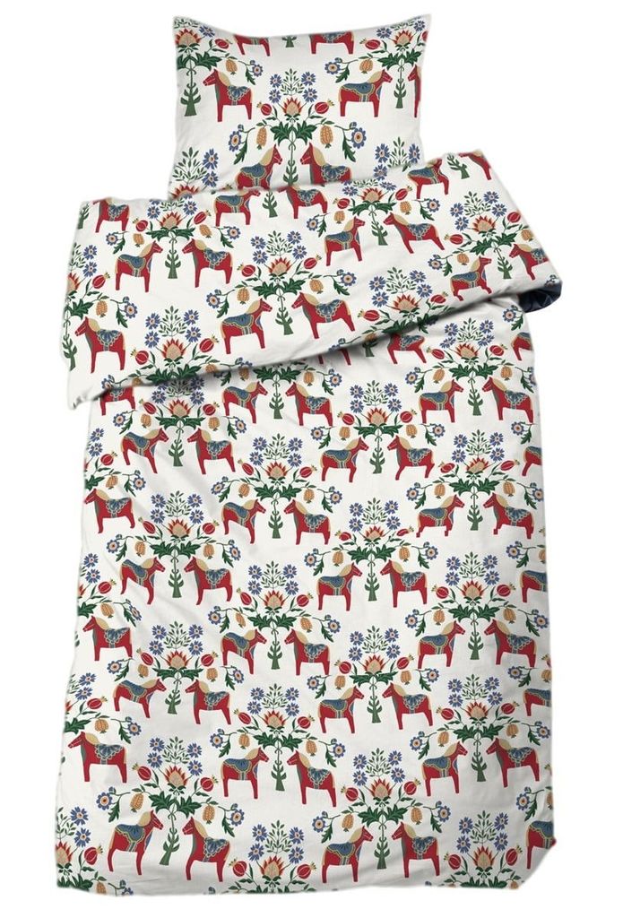Risa Vit Dalahäst för enkeltäcke innehåller ett påslakan 150x210 cm och ett örngott 50x60 cm.