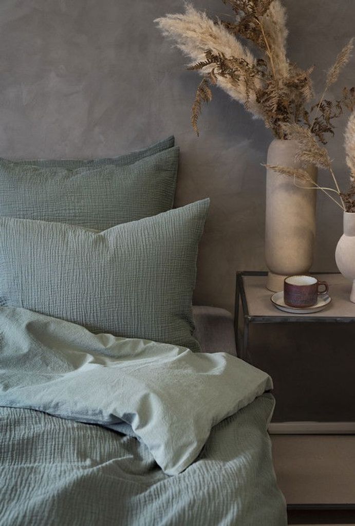 Ett skönt och stilrent påslakanset i 100% bomullspercale. Påslakanet och örngottet har en krinklad framsida och en slät baksida som en extra fin detalj. Percale kännetecknas av dess höga trådtäthet på över 200 TC, vilket ger en slät och hållbar struktur. Påslakanet har hörnhål och örngottet har en kuvertöppning.