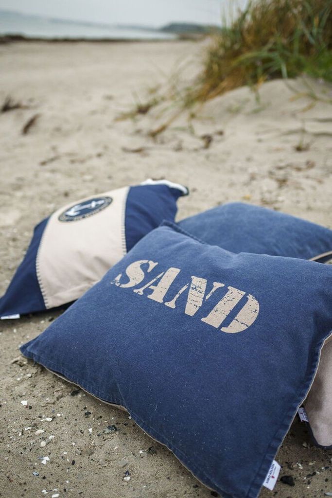 Saltsand är ett maritimt kuddfodral från Lord Nelson Victory som är stilren och unik. Kuddfodralet har ett dubbelsidigt mönster i en mörk marin och beige färg. Mitt på kudden står det "SAND" som ger en extra sandig touch. På ena sidan är texten beige och bottenfärgen marin, medan andra sidan är tvärtom. Detta gör så att det blir enkelt att välja stil och känsla i hemmet. Saltsand är det perfekta kuddfodralet som ökar havs- och sommarkänslorna året om!