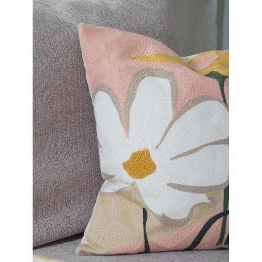 Förvandla soffan eller sängen till ett konstgalleri med detta exklusiva kuddfodral med broderad design. Det tidlösa blommotivet i varma nyanser av rosa, terrakotta, senapsgult och vitt skapar en sofistikerad och modern känsla. Den vackra broderingen på framsidan ger kuddfodralet en taktil dimension och lyxig känsla som höjer hela rummets atmosfär.