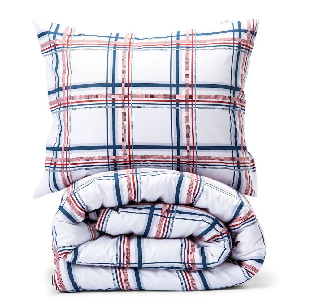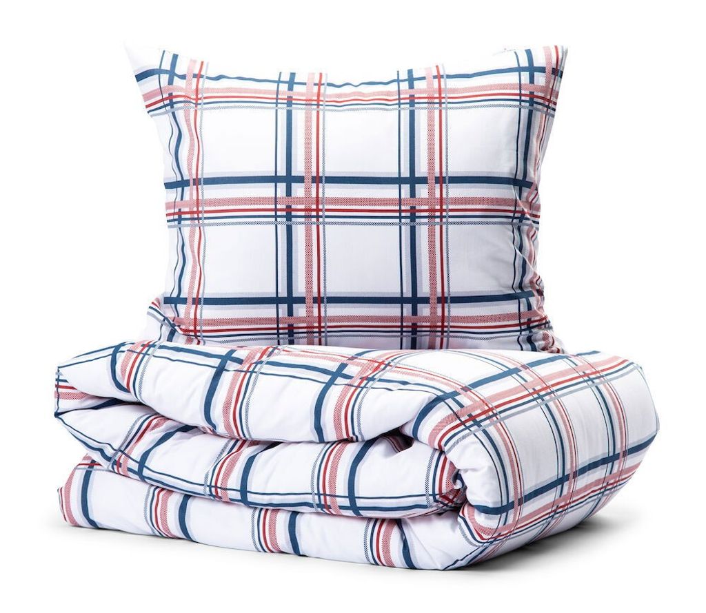 Skalhamn Röd/Blå Rutigt för enkeltäcke innehåller ett påslakan 150x210 cm och ett örngott 50x60 cm.