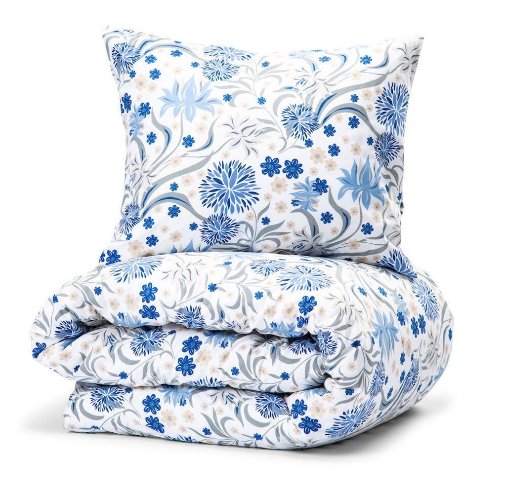 Skulestad Blå Blommigt för enkeltäcke innehåller ett påslakan 150x210 cm och ett örngott 50x60 cm.