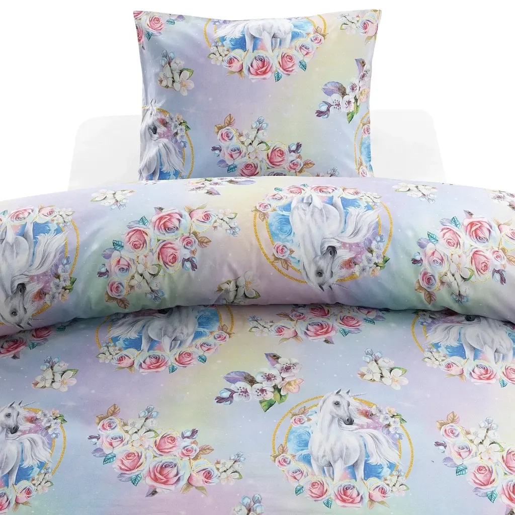 Spirit Rosa Enhörning Barn för enkeltäcke innehåller ett påslakan 150x210 cm och ett örngott 50x60 cm.