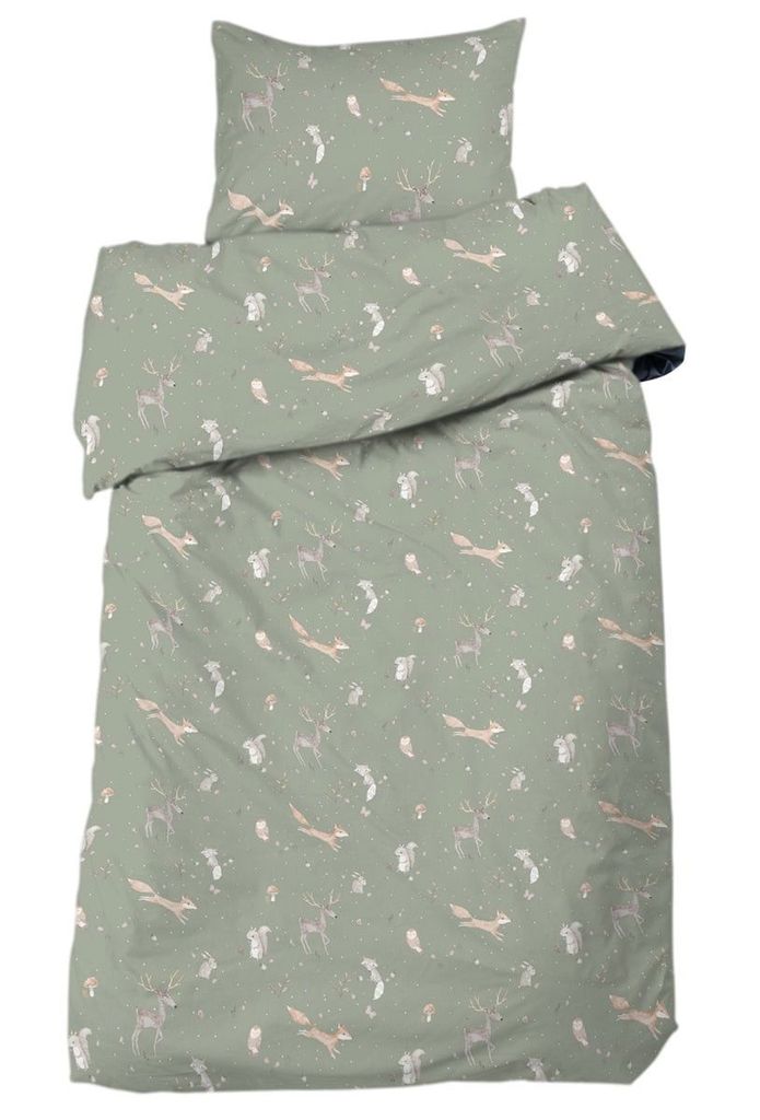 Stampe Grön Söta Djur Barn för enkeltäcke innehåller ett påslakan 150x210 cm och ett örngott 50x60 cm.