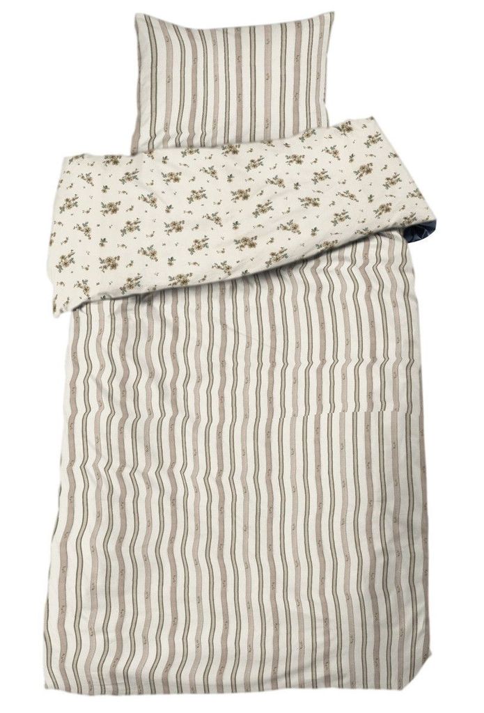Stina bäddset är perfekt för dig som uppskattar en sval och inbjudande känsla i sovrummet. Det vackra blommönstret i mullvad tillsammans med de eleganta ränderna skapar en sofistikerad lantlig stil. Tillverkat av högkvalitativ bomull, erbjuder detta bäddset en behaglig bäckebölja textur som känns skön mot huden. Med OEKO-TEX STANDARD 100 certifiering kan du vara säker på att det är fritt från skadliga ämnen. De diskreta färgerna och den stilrena designen gör det enkelt att matcha med annan inredning.