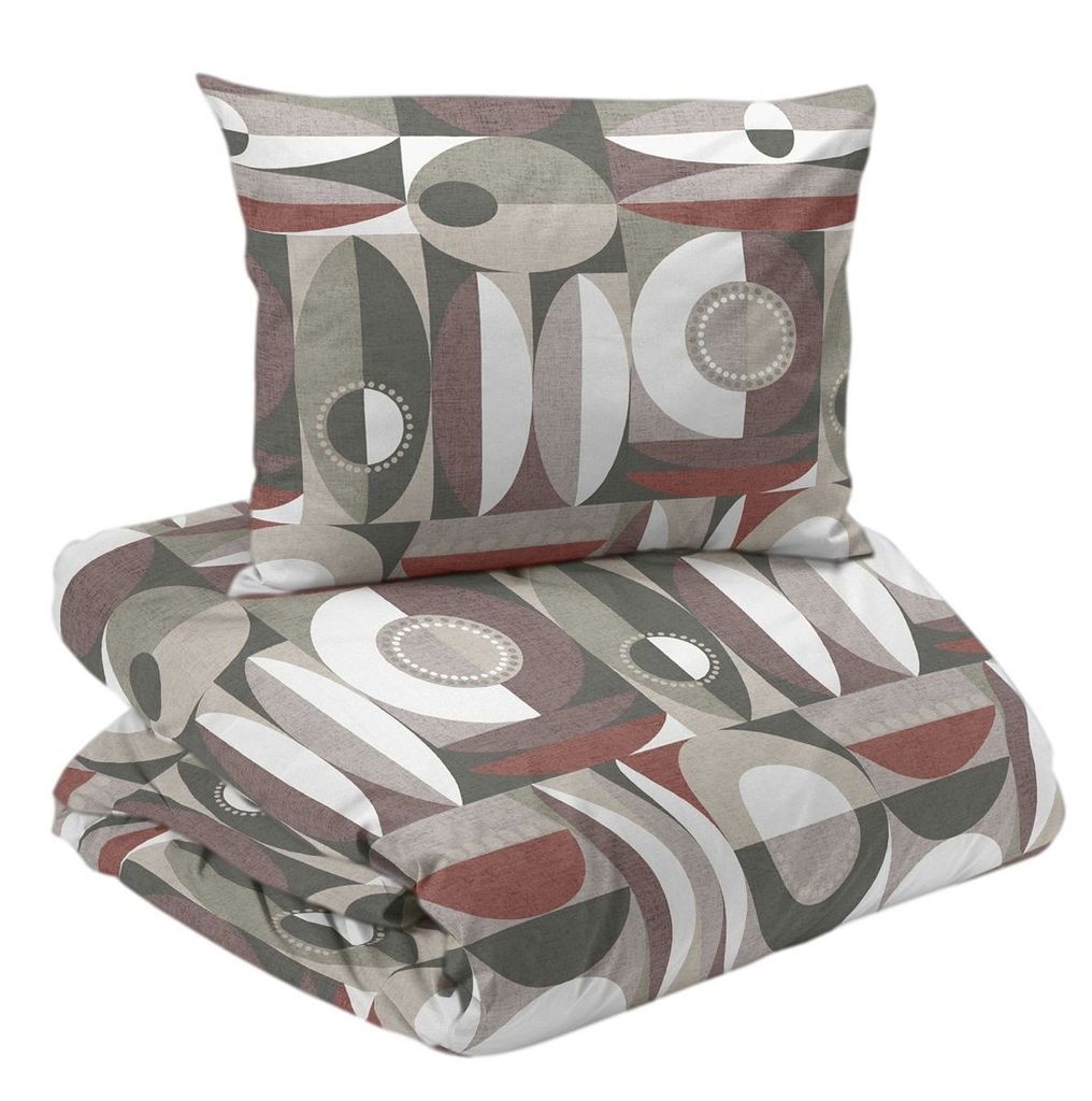 Tord är ett uttrycksfullt bäddset i 100 % BCI-certifierad bomull, designat med ett grafiskt mönster i dova toner av rost, beige, oliv och vitt. Mönstret är skapat av svensk designer och ger en konstnärlig känsla till sovrummet. Färgkombinationen och de mjukt rundade formerna skapar ett lekfullt men balanserat intryck.