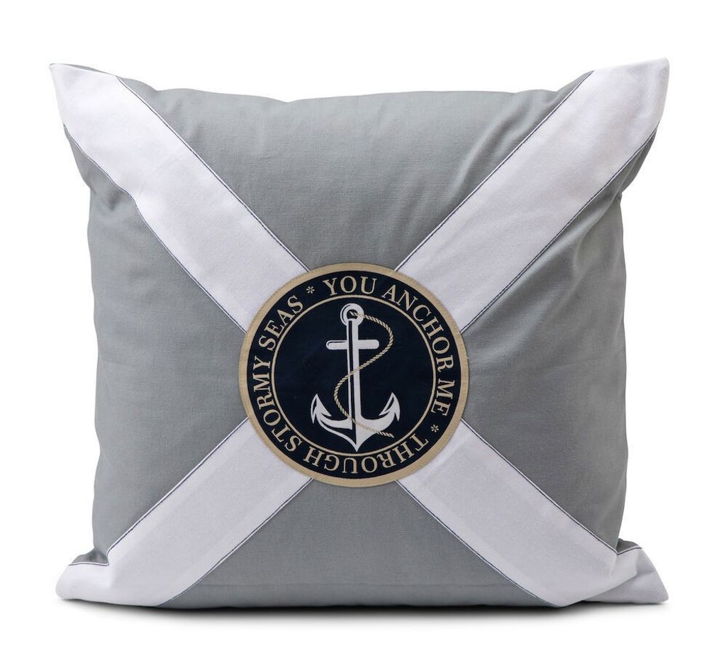 Vidar är ett maritimt kuddfodral från Lord Nelson Victory som är stilrent och ger en klassisk touch i hemmet eller till båten. Kuddfodralet har en fin grå nyans med ett vitt kryss på framsidan. Där krysset möts finns ett fint ankarmärke där det står "You Anchor Me. Through Stormy Seas". De vita detaljerna mot det gråa ger en fin kontrast, som ökar maritimkänslan till nya höjder. Vidar är det perfekta valet till den som vill behålla sommarkänslorna ute vid båten eller sommarstugan året om!