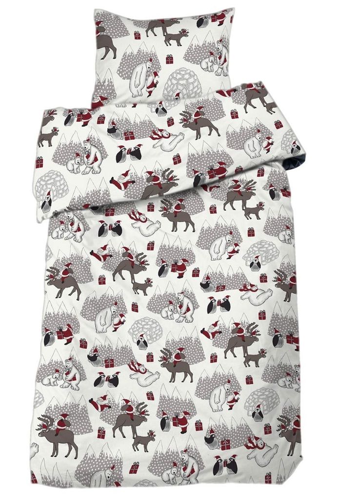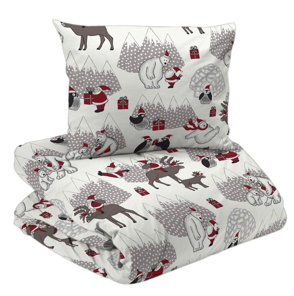 Julen är på ingång och här är det perfekta valet till årets julbäddning till spjälsängen! Vintertid har ett fint julmönster med tomtar, isbjörnar, pingviner och julgranar på en vit bottenfärg. Spjälsängssetet passar utmärkt till vinterns alla mysiga nätter och skapar den perfekta stämningen inför julen. Här skapas julens mys direkt efter första bäddning!