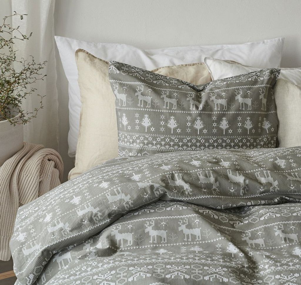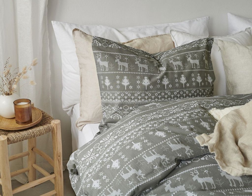 Fira in julen med Walle som har ett fint julmotiv av renar och granar på en underbart grön bottenfärg. Tack vare den subtila gröna färgen så kan julstämningen välkomnas in till sovrummet på ett diskret sätt. Walle är därför ett perfekt val till av bäddset och en utmärkt start på myskänslan inför juletider!