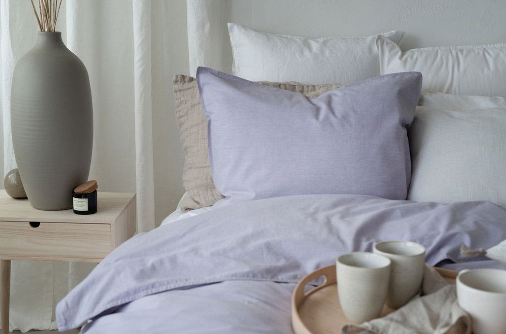 Washed Lila innehåller ett påslakan 150x210 cm och ett örngott 50x60 cm.